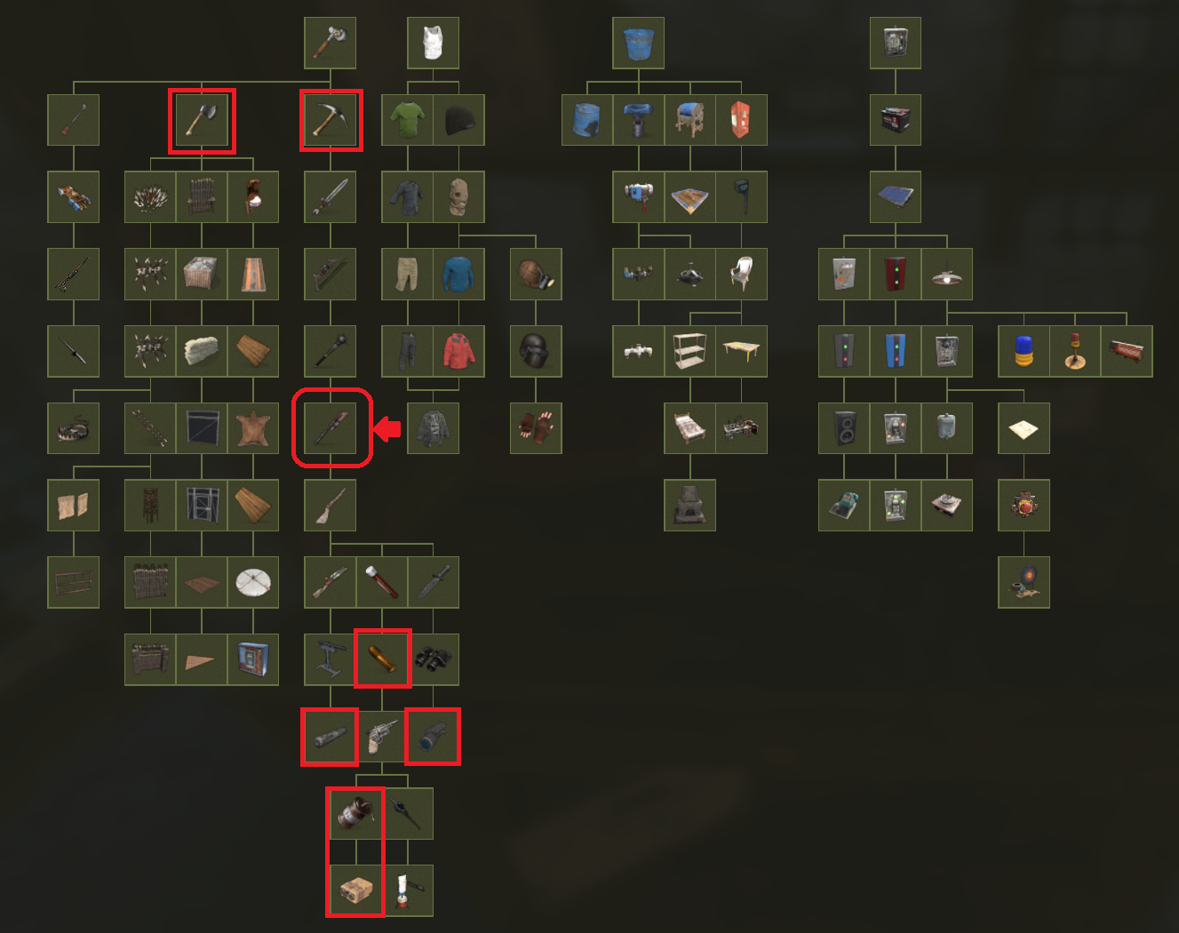 現物拾って、リサーチテーブルで覚えることで、周りのライバルを蹂躙できます。その中でも、インベントリーでスタック出来るアイテムを優先します。